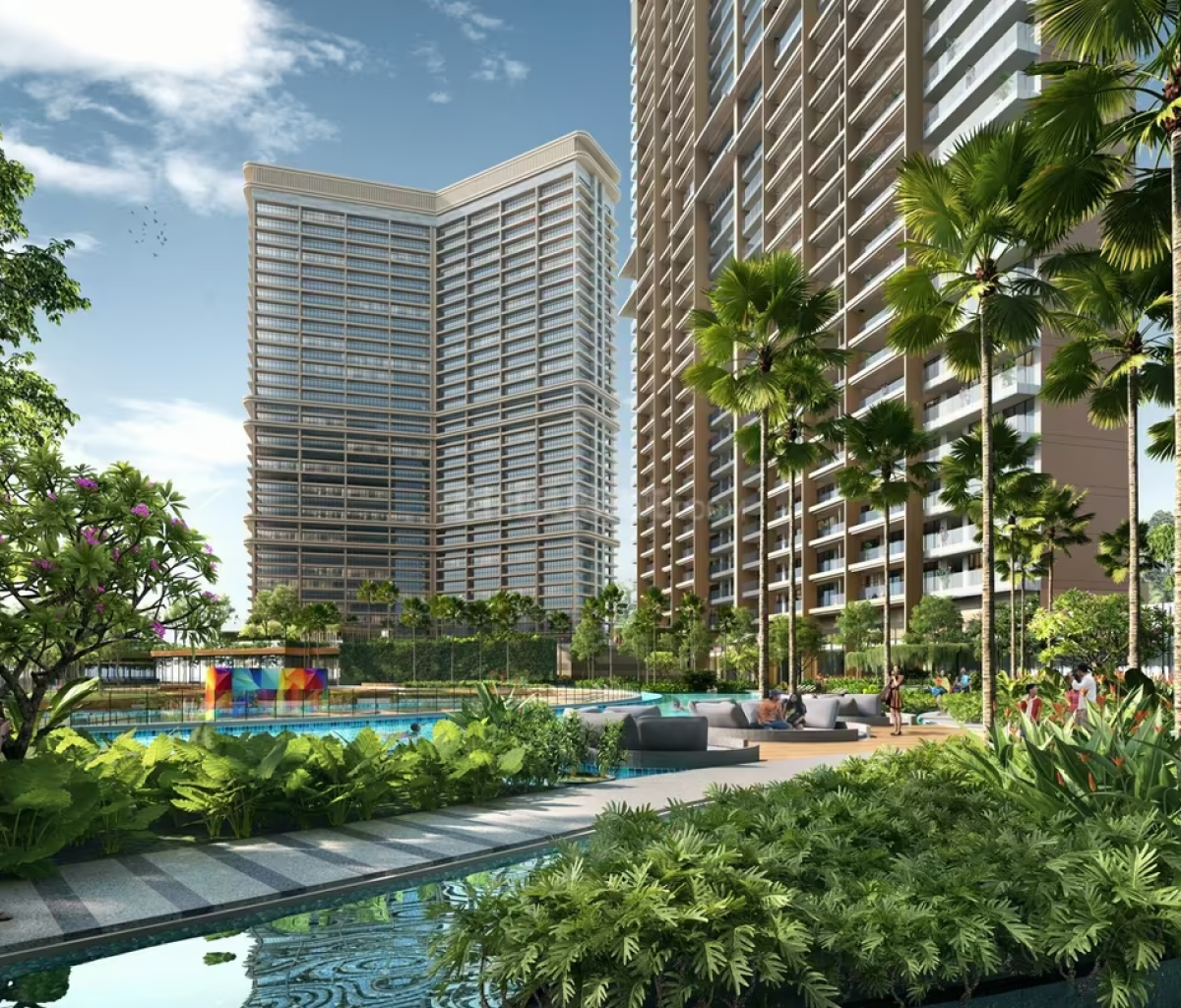 Apartments with complete air conditioning, expansive balconies, and generously sized rooms.
