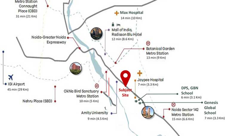 The Project is located right on the upcoming ~11 km metro link between Delhi and Noida.